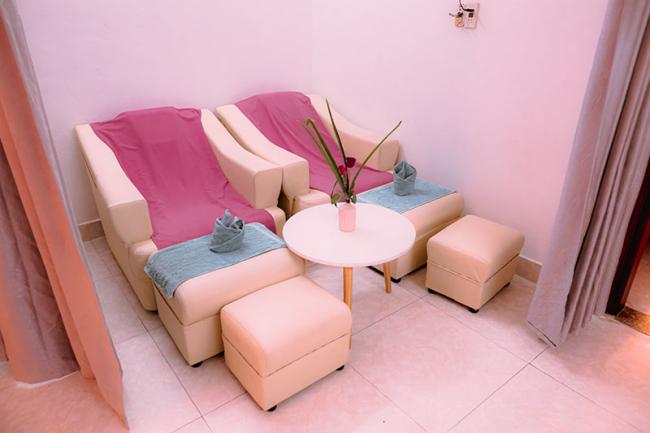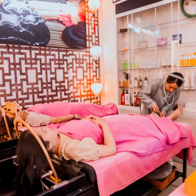 Massage chân: Điều trị này giúp tăng cường lưu thông và giảm mệt mỏi và đau nhức. Thư giãn khi chân được đắm mình trong một mùi thơm. Tích hợp các lợi ích của phản xạ để giải phóng căng thẳng và khối năng lượng rõ ràng, đôi chân của bạn sẽ được làm mới và chăm sóc