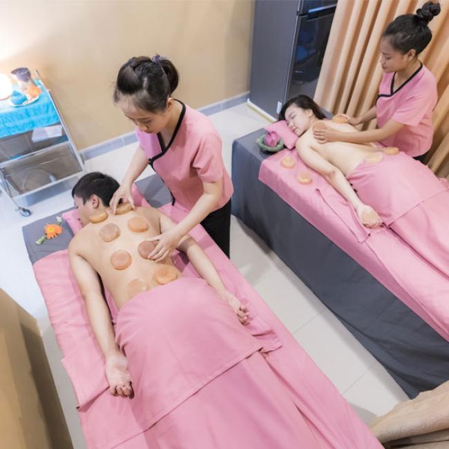 Trị liệu lưng: Đây là một điều trị tập trung vào lưng – Phần cơ thể tập trung vào các nhóm cơ lớn nhất và dễ đau nhất. Các kỹ thuật xoa bóp mô sâu sẽ được áp dụng bởi sự điêu luyện của các nhân viên trị liệu để giúp giảm đau và tách các nhóm cơ co cứng. Sau đó, lưng của bạn sẽ được phủ một mặt nạ thảo dược ấm áp thâm nhập vào các cơ và các huyệt sau lưng. Sau đó, đá nóng đóng một vai trò trong việc giữ ấm mặt nạ thảo dược trong thời gian dài hơn. Phương pháp điều trị này phù hợp với những người bị đau lưng.